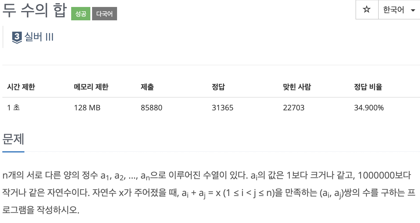 [공부] 백준 3273 두 수의 합(투포인터 문제)
